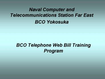 Title: BCO Telephone Web Bill Training Program