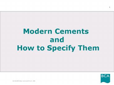 1Modern Cements and How to Specify Them