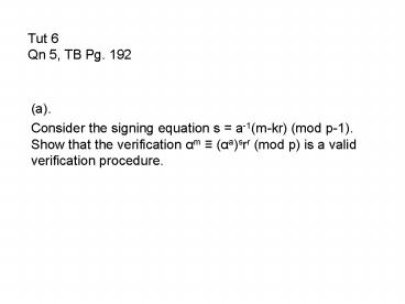 Tut 6 Qn 5, TB Pg' 192 PowerPoint PPT Presentation