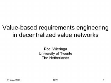 <Notice: Removed> Value-based requirements engineering in decentralized value networks PowerPoint PPT Presentation