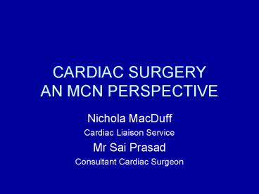 CARDIAC SURGERY AN MCN PERSPECTIVE PowerPoint PPT Presentation