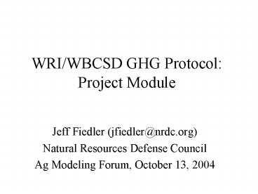 WRI/WBCSD GHG Protocol: Project Module PowerPoint PPT Presentation