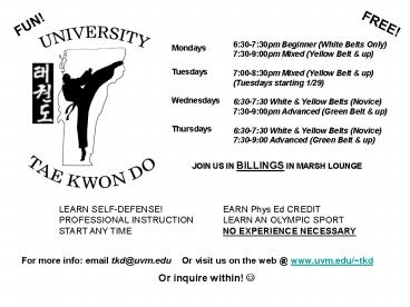 on the web _at_ www.uvm.edu/tkd Or inquire within!