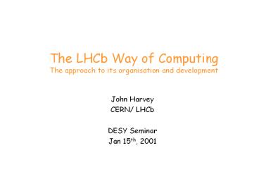 John Harvey CERN/ LHCb DESY Seminar Jan 15th,