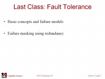<Notice: Removed> Last Class: Fault Tolerance PowerPoint PPT Presentation