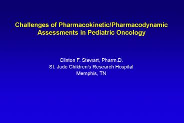 Title: Challenges of Pharmacokinetic/Pharmacodynamic Assessments in Pediatric Oncology