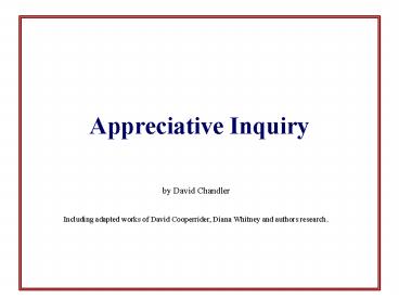 - Including adapted works of David Cooperrider,
