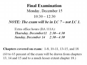 - NOTE The exam will be in LC 7 not LC 1.