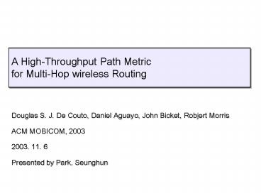 Bicket, Robjert Morris ACM MOBICOM, 2003 2003.