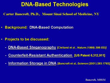Title: DNABased Technologies