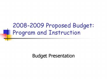 Title: 20082009 Proposed Budget: Program and Instruction
