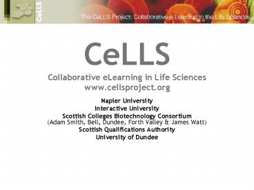 CeLLS Collaborative eLearning in Life Sciences www'cellsproject'org PowerPoint PPT Presentation