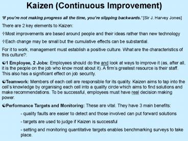 Kaizen (Continuous Improvement) PowerPoint PPT Presentation