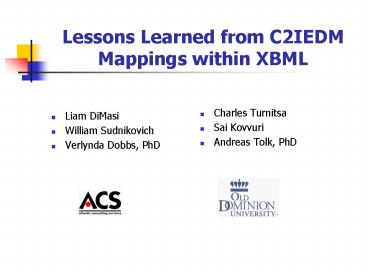 Lessons Learned from C2IEDM Mappings within XBML PowerPoint PPT Presentation
