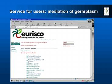 Service for users: mediation of germplasm PowerPoint PPT Presentation