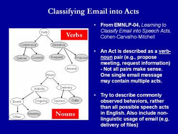 Speech Acts, Cohen-Carvalho-Mitchell - An Act is described as a verb-noun pair (e.g.,