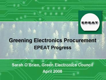 <Notice: Removed> Greening Electronics Procurement EPEAT Progress PowerPoint PPT Presentation