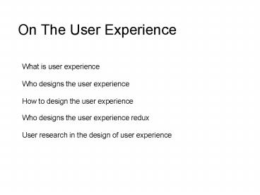 Title: On The User Experience