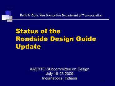 Status of the Roadside Design Guide Update PowerPoint PPT Presentation