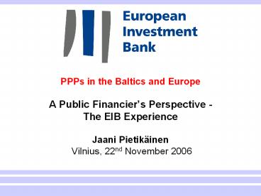 <Notice: Removed> PPPs in the Baltics and Europe A Public Financier PowerPoint PPT Presentation