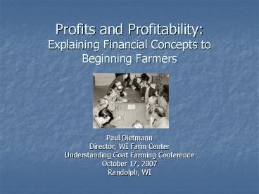 Title: Profits and Profitability: Explaining Financial Concepts to Beginning Farmers