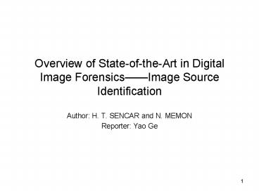Title: Overview of State-of-the-Art in Digital Image Forensics