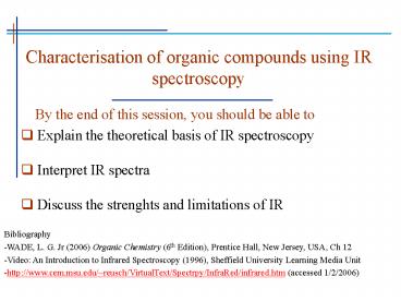 1Characterisation of organic compounds using IR