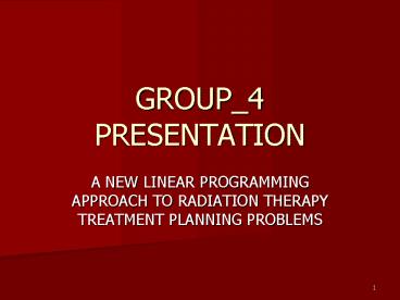 - A NEW LINEAR PROGRAMMING APPROACH TO RADIATION