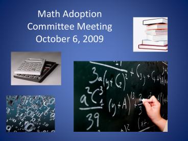 <Notice: Removed> Math Adoption Committee Meeting October 6, 2009 PowerPoint PPT Presentation
