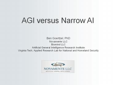 1AGI versus Narrow AI