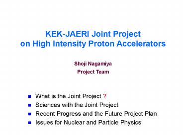 1KEK-JAERI Joint Projecton High Intensity Proton