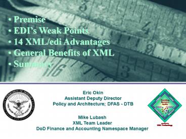 Mike Lubash XML Team Leader DoD Finance and
