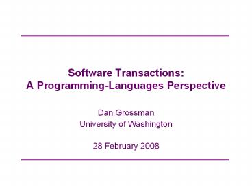 <Notice: Removed> Software Transactions: A Programming-Languages Perspective PowerPoint PPT Presentation