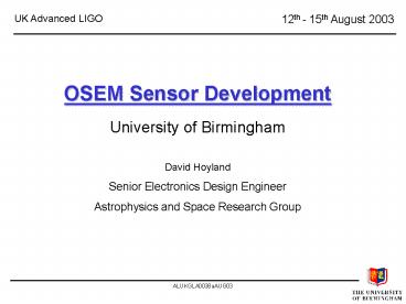 undertaken at UoB to assess feasibility for LIGO - We predicted a maximum sensitivity of 1?10-11