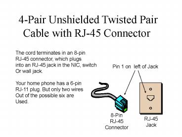 4Pair Unshielded Twisted Pair Cable with RJ45 Connector PowerPoint PPT Presentation