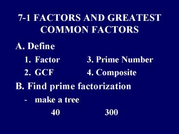 71 FACTORS AND GREATEST COMMON FACTORS PowerPoint PPT Presentation