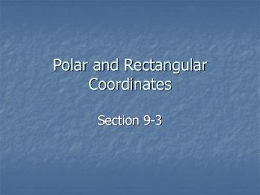 Polar and Rectangular Coordinates PowerPoint PPT Presentation