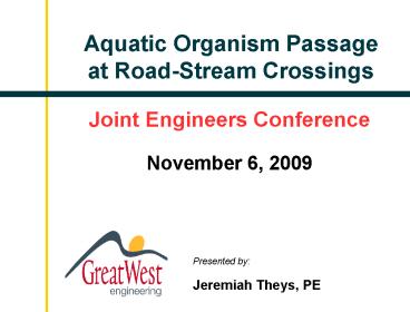 Title: Aquatic Organism Passage at RoadStream Crossings