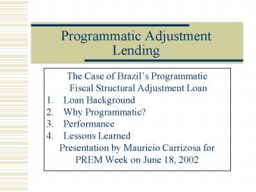 <Notice: Removed> Programmatic Adjustment Lending PowerPoint PPT Presentation