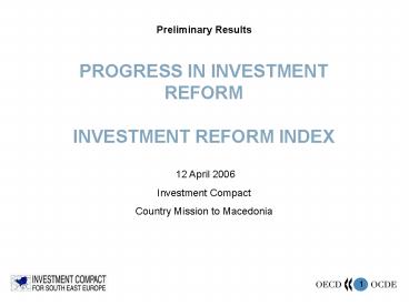 Title: PROGRESS IN INVESTMENT REFORM INVESTMENT REFORM INDEX