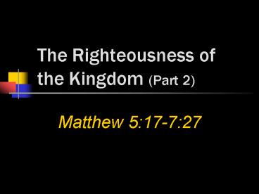 The Righteousness of the Kingdom Part 2 PowerPoint PPT Presentation