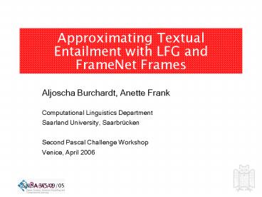 <Notice: Removed> Approximating Textual Entailment with LFG and FrameNet Frames PowerPoint PPT Presentation