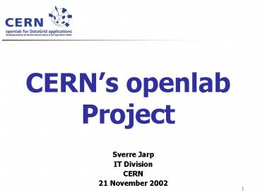 CERNs openlab Project PowerPoint PPT Presentation