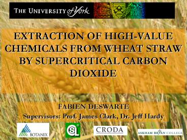 Title: EXTRACTION OF HIGHVALUE CHEMICALS FROM WHEAT STRAW BY SUPERCRITICAL CARBON DIOXIDE