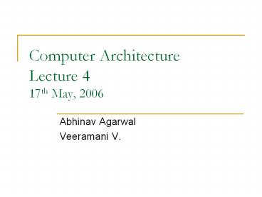 Title: Computer Architecture Lecture 4 17th May, 2006
