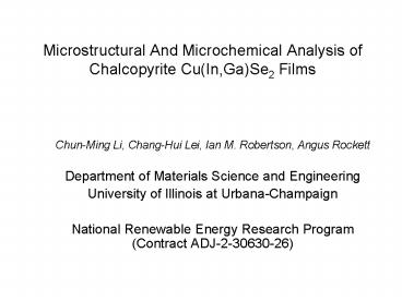 Title: Microstructural And Microchemical Analysis of Chalcopyrite CuIn,GaSe2 Films
