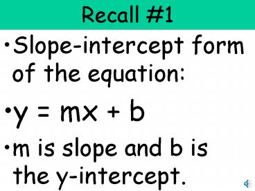 • Slope-intercept form of the equation