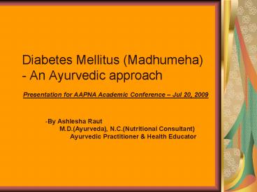 Title: Diabetes Mellitus Madhumeha An Ayurvedic approach