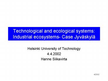 Technological and ecological systems: Industrial ecosystems Case Jyvskyl PowerPoint PPT Presentation