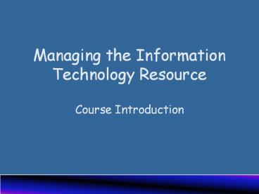 Title: Managing the Information Technology Resource Course Introduction